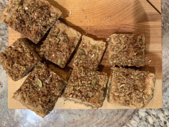 Since getting into Nutrition, my aim has been to 1. make whole, real food accessible 2. educate people on what a truly nutritious lifestyle is and 3. make comfort foods and traditional favorites healthy and enjoyable. These apple pie bars are a testament to that. Nut-free, refined sugar-free, and gluten-free. They taste like the real thing, bringing you back to the good ol’ days, while providing the nutrients that nature intended to give us during this fall season.