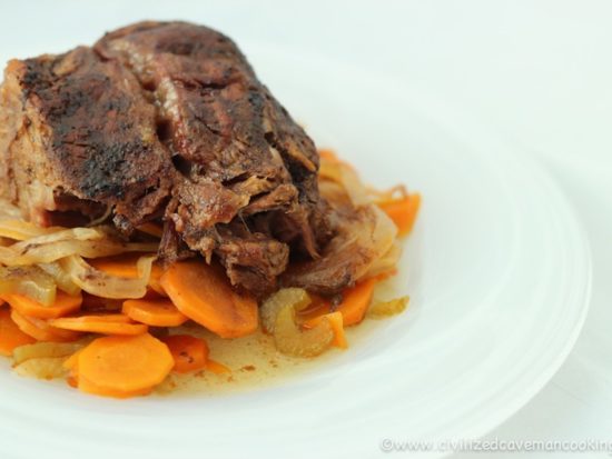 - Line the bottom of your crockpot with your onions, celery, and carrots