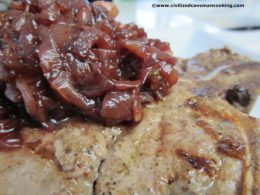 - Plate and place your sweet onion reduction on the side