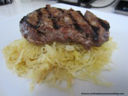 - Put your spaghetti squash on the plate and top with your grilled ribeye