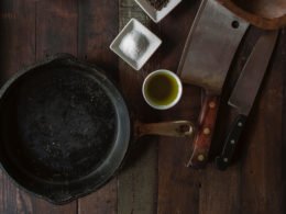 So what do you do if you can’t use soap? When you’re done cooking something with it, you clean it out immediately. Just grab a clean brush (no soap!), get all the residue out, then dry it and oil it to re-season it. And as you probably know, the re-seasoning is what makes cast iron so great and more effective over time. The more seasoning it gets, the better the pan performs.