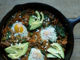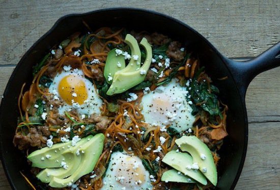 I got a lot of blabbing done and didn’t even mention this amazing recipe once. I have been getting a plethora of emails lately from people exclaiming that they can never figure out breakfast, or it’s too hard to make, or too time consuming so for a week I set out and made a different breakfast everyday. Yes, they all involve eggs because I love eggs but if you can’t have them, you can leave them out and enjoy just as much. This was my favorite one of the week so I am posting it first. You cook everything in one pan and that makes clean up a breeze and if you are like me, you eat it out of the pan too which saves even more time. I won’t keep you from this heavenly dish any longer. Enjoy and as always share if you like it and don’t forget to subscribe to my newsletter below this post to never miss any new recipes.