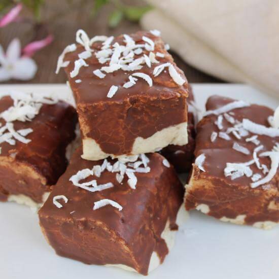 - Dip firm marshmallows into chocolate, sprinkle some shredded coconut on top and place in the fridge for 30 minutes.
