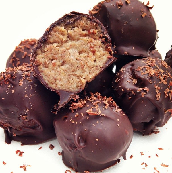 As you’ll see below there is a point where you’ll have to trim the edges off of the bread, key word “trim”. My edges were cut, like inches, and the banana bread loaf kept shrinking and then I was like okay enough is enough! I HAVE to make this recipe! (Shoving one last bite of banana bread in my mouth…and then one more). So my advice to you would be, make 2 loaves of his banana bread, one to make this recipe with and then one to just eat because, well it’s delicious and you’ll want it later. Trust me. So now I present to you Paleo Banana Bread Chocolate Truffles. If you like what you read and eat, feel free to check out my blog at Clean Eating with a Dirty Mind; it’s open 24 hours a day so stop on by!
