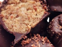 As you’ll see below there is a point where you’ll have to trim the edges off of the bread, key word “trim”. My edges were cut, like inches, and the banana bread loaf kept shrinking and then I was like okay enough is enough! I HAVE to make this recipe! (Shoving one last bite of banana bread in my mouth…and then one more). So my advice to you would be, make 2 loaves of his banana bread, one to make this recipe with and then one to just eat because, well it’s delicious and you’ll want it later. Trust me. So now I present to you Paleo Banana Bread Chocolate Truffles. If you like what you read and eat, feel free to check out my blog at Clean Eating with a Dirty Mind; it’s open 24 hours a day so stop on by!