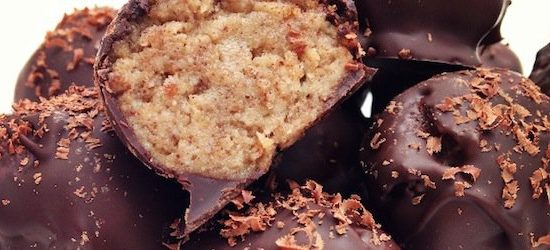 - Gently grate a few shavings of the 85% cacao dark chocolate onto the top of the truffle while it's still wet.When you've finished place back in the fridge to let the chocolate harden.