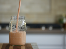 - Pour your smoothie into a mason jar and sprinkle caveman crunch on top
