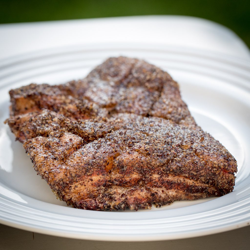 So everyone knows I love bacon but I don’t want anyone to think that I discriminate against any of the other amazing things you can do with pork belly. Lately, I have been working hard at mastering my own homemade bacon but I haven’t perfected it enough to share yet. Since I had a plethora of pork belly though I decided I would make a new, simple recipe that everyone can enjoy. If you have a smoker, great, if not you should probably buy one ;). Just kidding, you can totally roast this in the oven as well. I included instructions for both so everyone can be happy with this delicious swine.