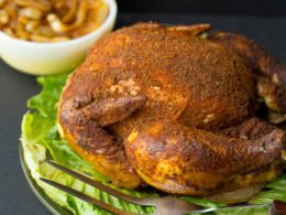 - Using your hands, rub this mixture over the entire chicken evenly, inside and out