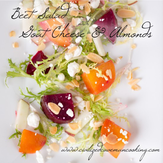 Holy moly, it’s a new recipe and it’s not a dessert. Honestly though, beets are like dessert for me right now. My awesome buddy Pete got me hooked on beets and taught me how simple they are to prepare and have on hand. They really are scrumptious and can be used in so many ways that you HAVE to go cook with them now. So occasionally, Lindsey and I go out to dinner and are always on the hunt for the best farm-to-table restaurants or restaurants that have a focus on local meats etc. We have found a few favorites and there is always one common factor, everything single one of them has some sort of beet appetizer. So, since we are all trying to be fancy, now we get to have a beet appetizer that is simple to make and loaded with flavor.
