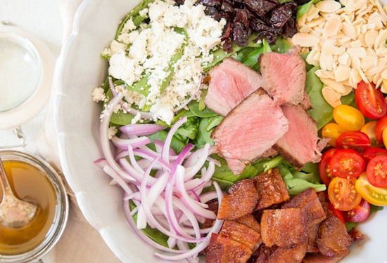 - Add your grass-fed sirloin or any meat of your choice to the middle of your salad